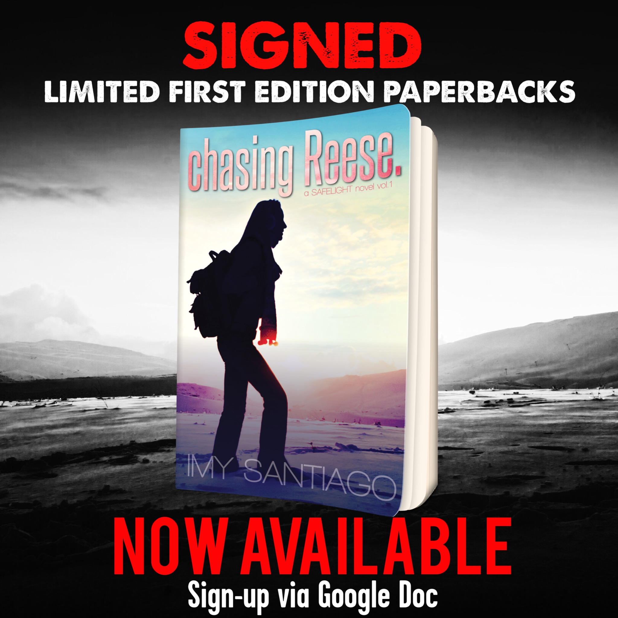 I’m pleased and thrilled to announce Signed LIMITED First Edition Paperbacks of chasing Reese. are now available for purchase via Direct Order HERE. To those who order signed paperbacks, as a thank you for your purchase you will receive a complimentary autographed bookmark and postcard. Also, if you want to acquire non-signed paperbacks, they are available at CreateSpace eStore, Amazon, and Barnes & Noble.