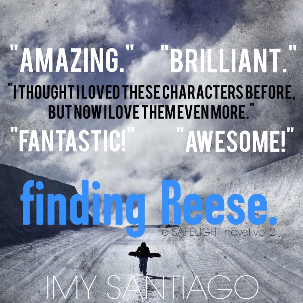 finding Reese. Update Posted on April 18, 2015 by imysantiago The countdown begins. finding Reese. a SAFELIGHT novel vol.2 Coming Soon. Make it rain! Click to share on X (Opens in new window) X Click to share on Facebook (Opens in new window) Facebook More Click to share on LinkedIn (Opens in new window) LinkedIn Click to share on Reddit (Opens in new window) Reddit Click to share on Tumblr (Opens in new window) Tumblr Click to share on Pinterest (Opens in new window) Pinterest Like Loading... Related